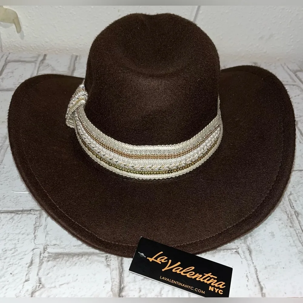 La Valentina NYC Sequin Band Trim Felt Cowboy Hat Color Dark Brown Retail $40 MATERIAL: 100%... Show more