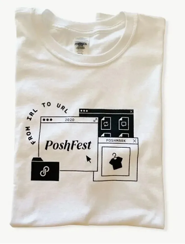 Poshmark Unisex TShirt, Official PoshFest 2020 Size: L Measurements: armpit-to-armpit 22.5 inches,... Show more