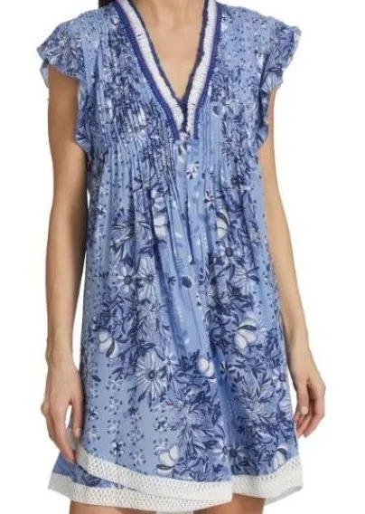 Poupette St Barth Tunic Blouse Womens Small Blue White Floral V-Neck Lace Trim Tassel detailing at the neckline, flutter sleeves, and a crocheted hem enhance this floral mini dress by Poupette St Barth. V-neck Short sleeves Pullover style 100% viscose Machine wash cold Imported SIZE About 34" from shoulder to hem Model measurements: 5’10” tall Model is wearing US size Small Condition: Good condition. No visible flaws. Size: Size Small Material: 100% VISCOSE Features: V-neck, Ruffled Collar, Pleated Front, Short Sleeves, White Crochet Lace Trim Measurements: Pit to Pit: 20.5 inches Length: 34 inches Tag: Bohemian, Resortwear, Summer, Spring, Beach, Casual, Designer, Flowy, Pleated, Patterned