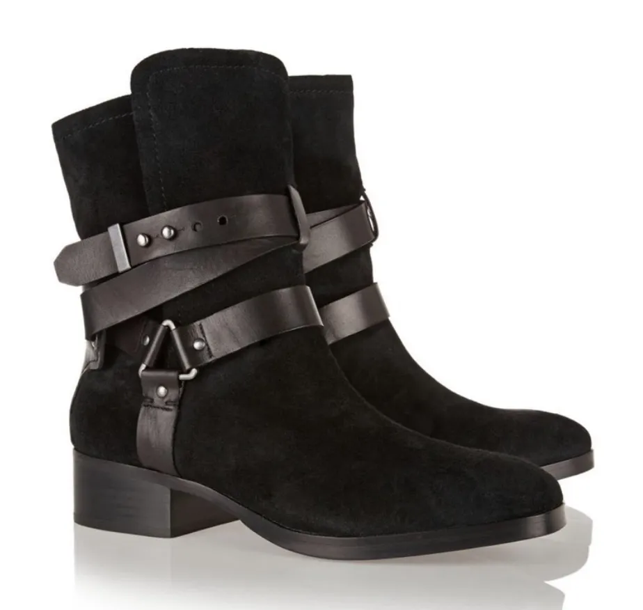 Pour la victoire Riley suede moto boots in black Pour la Victoire suede moto boot. 1 1/2" stacked fl... Show more
