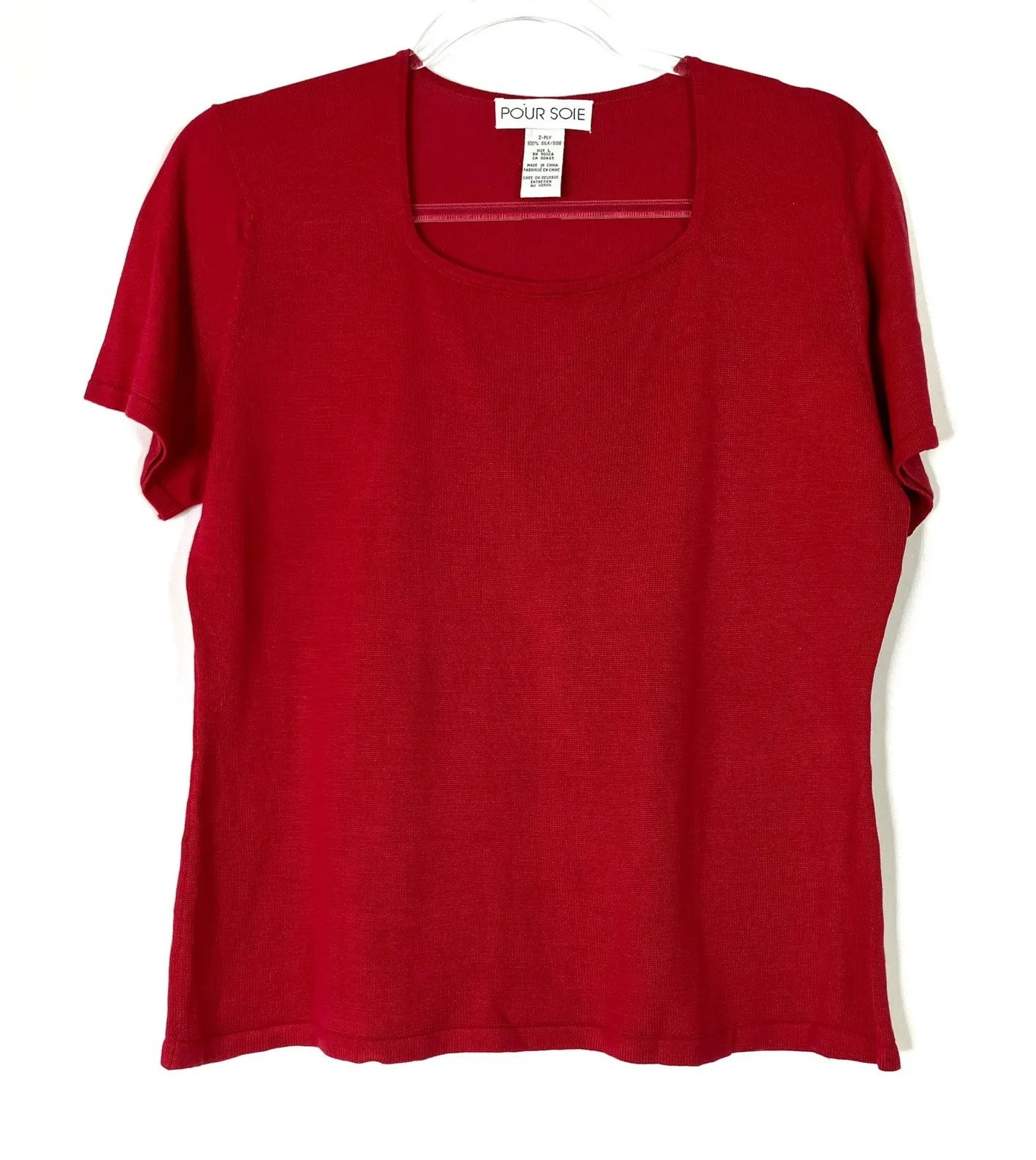 Pour Soie | Vintage 100% Silk Red Tee Shirt Short Sleeve Square Scoop Womens L Size L - $35 - From Emily