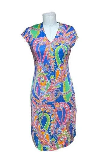 Ralph Lauren Black Label Jersey Paisley Dress in Navy Blue Multicolor. Multicolored paisley pattern... Show more