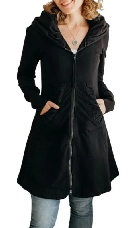 -First photo supplied to visualize style and fit; see item photos for actual item and condition- Unique version of Iconic Prairie Underground classic first introduced in 2006 and one of the brand’s longest-running styles. Dramatic fit-and-flare shaping with bustier-inspired design lines, and a back belt inset for a beautifully sculpted silhouette. Kangaroo pockets and long sleeves. Durable French terry knit in South Carolina. Made in Seattle, USA. Black with Red Trim. Retail: $319 Good pre-owned condition, has some minor signs of wear (see photos and I welcome questions) Measurements (flat): 36” length, 16” pit-to-pit, 14” shoulder, 27” sleeve victorian, witchy, goblincore, whimsygoth, whimsigoth, boho, granola girl, long coat, long sweatshirt, festival, y2k, archive collection, cozy, wardrobe staple, capsule wardrobe, swim coverup, beach coverup, rare, hard to find, cosplay, theatrical, architectural