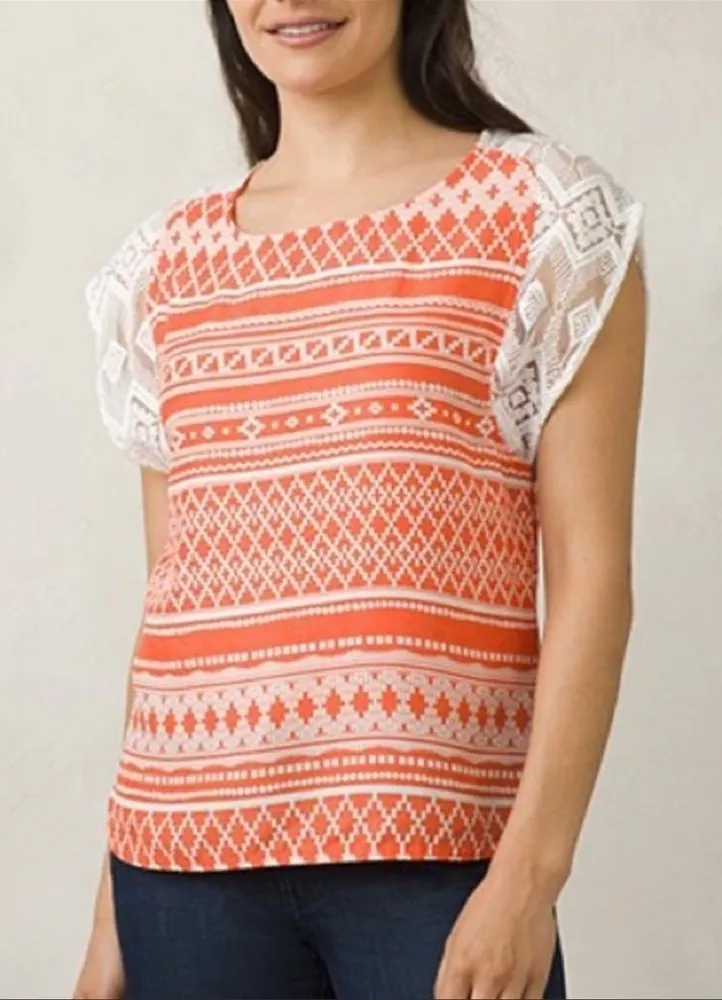 Prana Aleen Orange And White Blouse Top Size XS #W11170092. Great condition see photos for details.... Show more