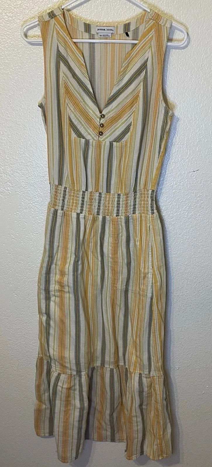 PrAna California Dreaming Ruffle Striped Maxi Dress In Golden Hour Yellow XS Gold - $35 - From Erica