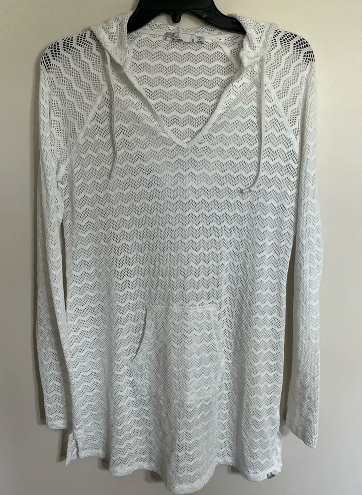 prAna Luiza Swimsuit Cover-Up Hooded‎ Tunic White Chevron Pocket Size Small - $22 - From Quirky