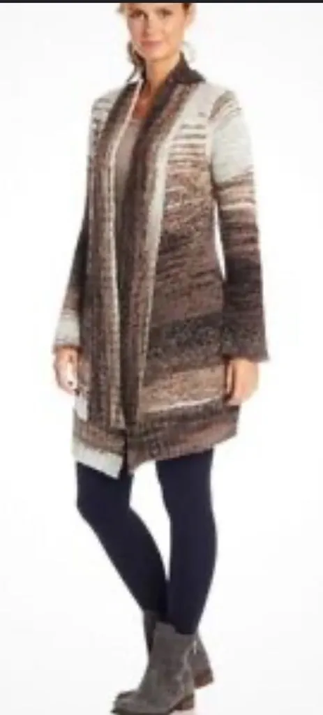 Prana Neutral Brown Ombré Knit Open-Front Cardigan Sweater Size: XL Features blended shades of brown, taupe, and cream with a soft knit texture and flattering draped silhouette. Longer front panels create an easy, flow fit that’s perfect for layering. ✨ Long sleeves ✨ Neutral ombré stripe design ✨ Comfortable, relaxed fit Great for casual wear, travel, work-from-home, or cozy fall and winter layering. Good pre-owned condition. Please review photos for details. Tags: boho, neutral sweater, fall, winter, athleisure style, Lagenlook, hippie, breathe