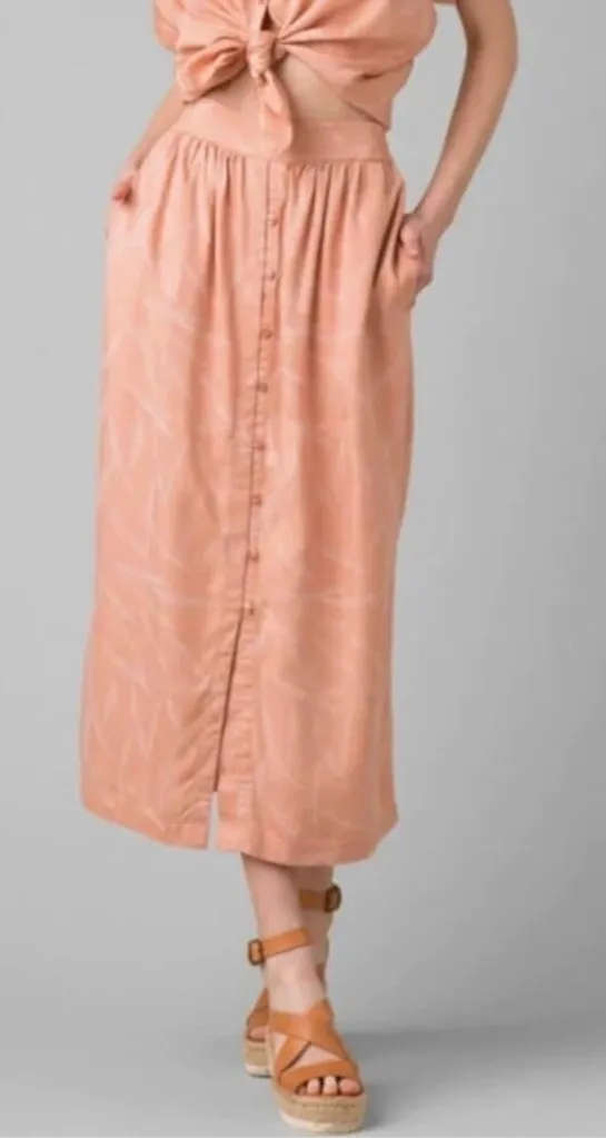 prAna Swift Lake Button Front Midi Skirt in Apple blossom leaves Large NWT - $55 New With Tags - From Tracy