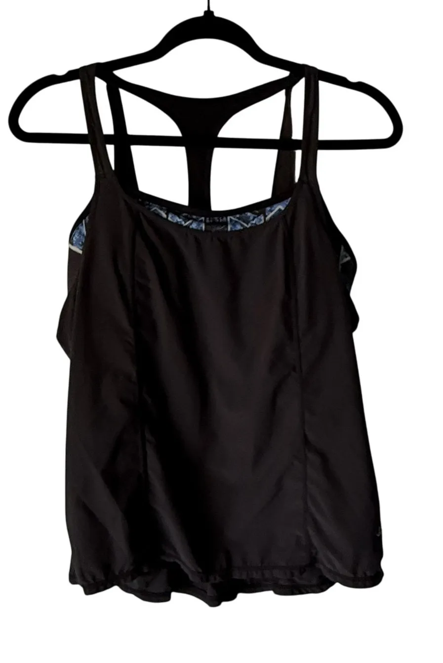 Prana Tank Top Womens Small Black Racerback Blue Print Shelf Bra Yoga Athletic Condition: Gently wor... Show more