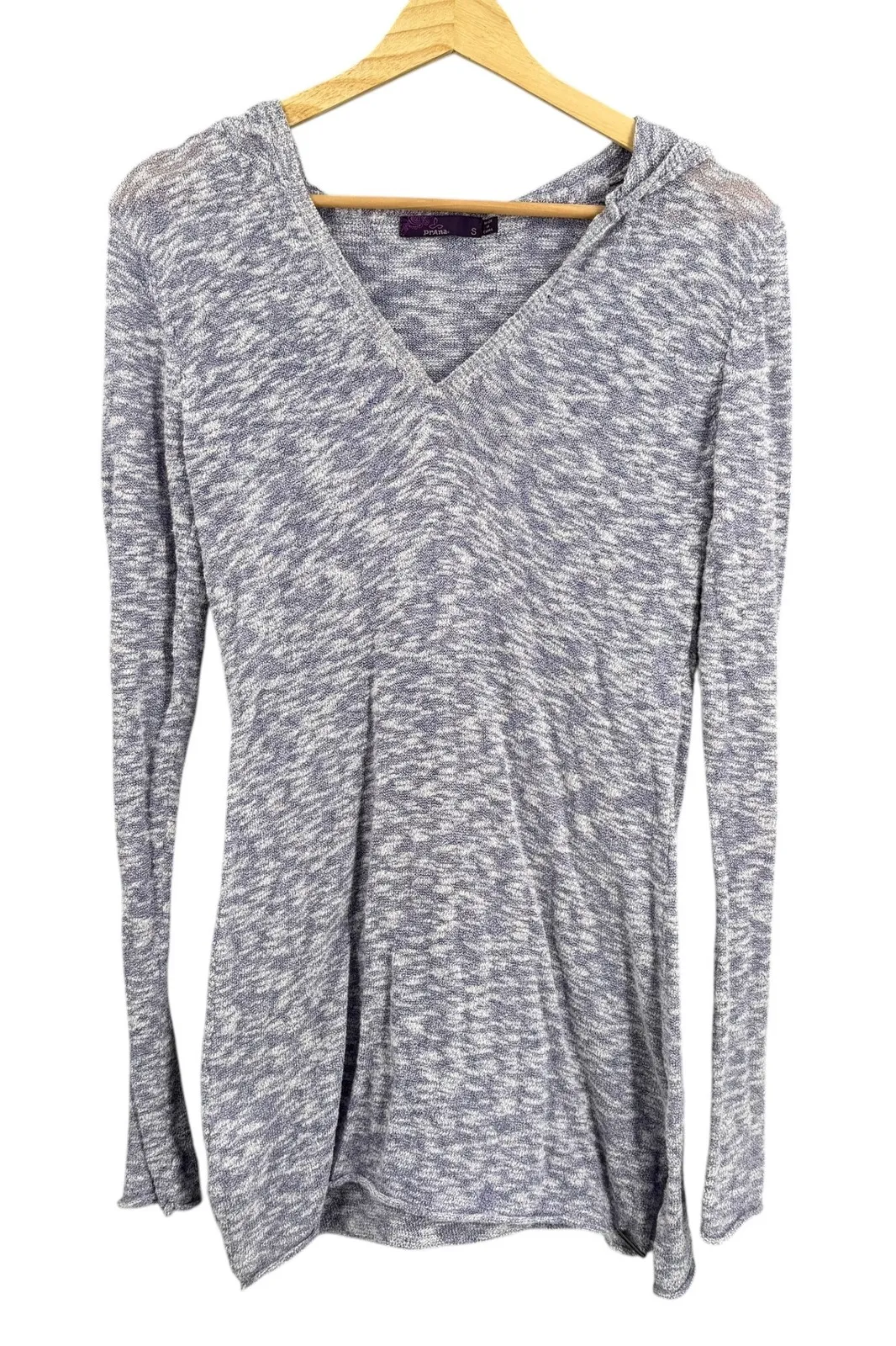 prAna Women's Lightweight Knit Hoodie Tunic Sweater – Size Small Soft, eco-friendly, and effortlessly casual. This slightly sheer prAna tunic hoodie sweater blends comfort and sustainability with organic cotton and polyester knit fabric. Perfect for layering or everyday wear. - Size: Small (17.5" pit to pit, 30" length) - Color: Purple Space Dye - Fabric: 67% Organic Cotton / 33% Polyester - Features: V-Neck, Long Sleeve, Hooded Back, Lightweight Knit - Condition: Pre-owned, excellent overall condition Ideal for yoga, lounge, or weekend casual outfits. Ships fast – bundle to save on shipping! Keywords: marled knit, hooded top, v neck, long sleeve, athletic, loungewear, casual wear, lightweight, breathable, activewear, athleisure, organic cotton blend