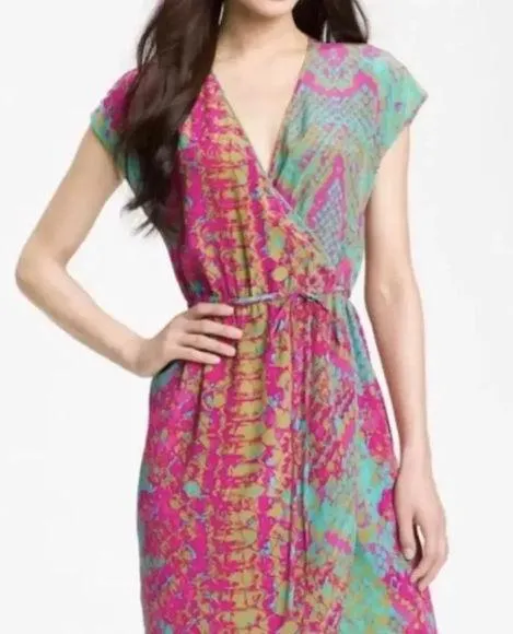Presley Skye Silk Day Glo Snake Print Dress A line Short Sleeve Elastic Waist S - $30 - From Hannah