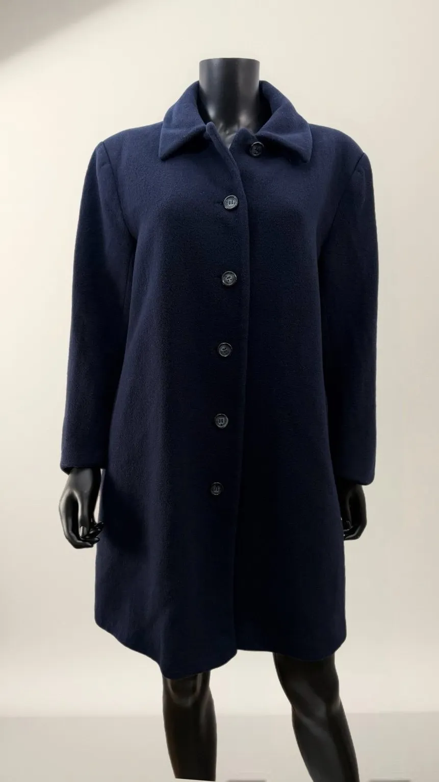 Timeless and beautifully tailored Preston & York coat in a rich navy blue. Made from 100% wool with a smooth 100% acetate lining, this classic button-front coat offers warmth, structure, and an elegant silhouette. Features slanted hand pockets, long sleeves, and a polished collar. Perfect for fall and winter wear, work, travel, or everyday sophistication. Features: • Size: 16W • Color: Navy • Shell: 100% Wool • Lining: 100% Acetate • Button-front closure • Fully lined • Slanted side pockets • Classic, minimalist design Measurements (approx.): • Bust: 23.5" pit-to-pit • Length: 36" • Sleeve length: 28" (from shoulder to cuff) Condition: Excellent pre-owned condition. No holes, stains, or notable wear. Clean and ready to wear. A high-quality, long-lasting wool coat that never goes out of style. ⸻ #WoolCoat #PlusSizeFashion #ClassicStyle #WinterCoat #PrestonAndYork C/5