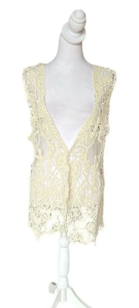 Pretty Angel Vest Sleeveless Crochet Cardigan Cream Lace Womens Medium Excellent condition no flaws... Show more
