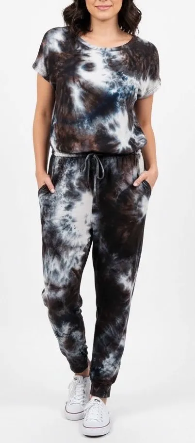 A stylish PRETTY GARDEN tie-dye jumpsuit with a comfortable scoop neckline and short sleeves. This one-piece features a flattering drawstring waist for adjustable fit and convenient pockets. The unique tie-dye pattern in brown blue and white adds a bohemian flair. Perfect for casual outings relaxed weekends or vacation getaways. Measurements: • Chest: 25 in • Length: 60 in Department: Women Type: One-Piece Style: Jumpsuit Fabric Type: Knit Sleeve Length: Short Sleeve Pattern: Tie Dye Occasion: Casual Set Includes: Pants Number of Pieces: 1 Piece Accents: Zipper, Drawstring Leg Style: Tapered Features: Pockets, Cuffed Neckline: Round Neck Closure: Zipper Season: Spring, Summer, Fall Keywords: tie dye, jumpsuit, scoop neck, short sleeve, drawstring, pockets, one piece, boho, casual, loungewear, relaxed fit, all in one, fashion All orders are shipped the same business day or the next business day. Thank you for supporting my small business.