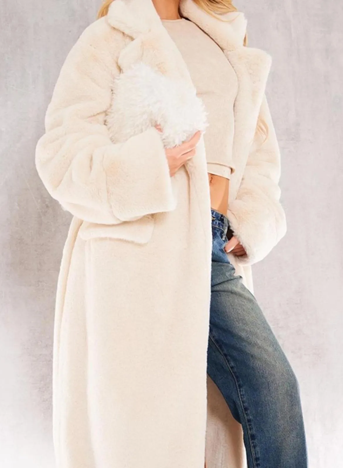 the softest fur ever! super cozy winter coat that will go with any outfit. White faux fur coat with... Show more