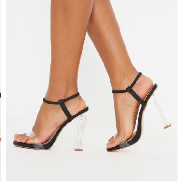 Black wide fit clear block heel strappy sandal size 39/6 which is US 8.5