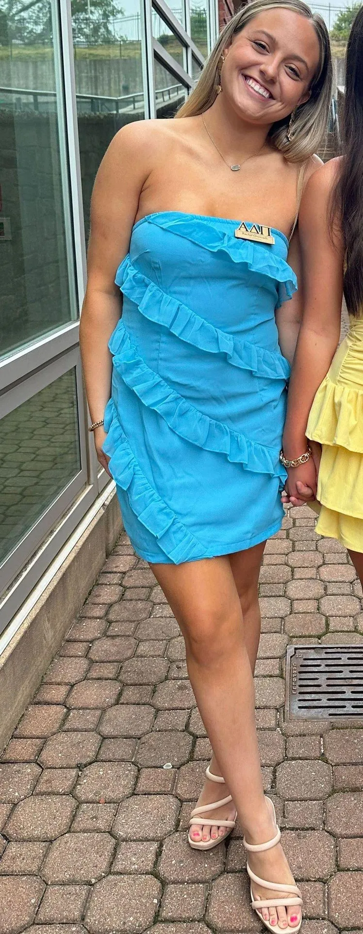 Worn once for sorority recruitment! Perfect condition with no flaws. Fits true to size + very flatte... Show more