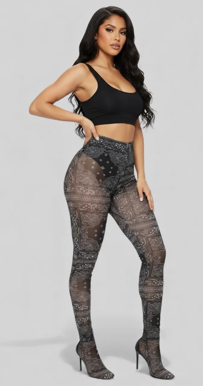 Elastic waistband Built in sock design High-waisted fit Bandana print design Stretchy and comfortabl... Show more
