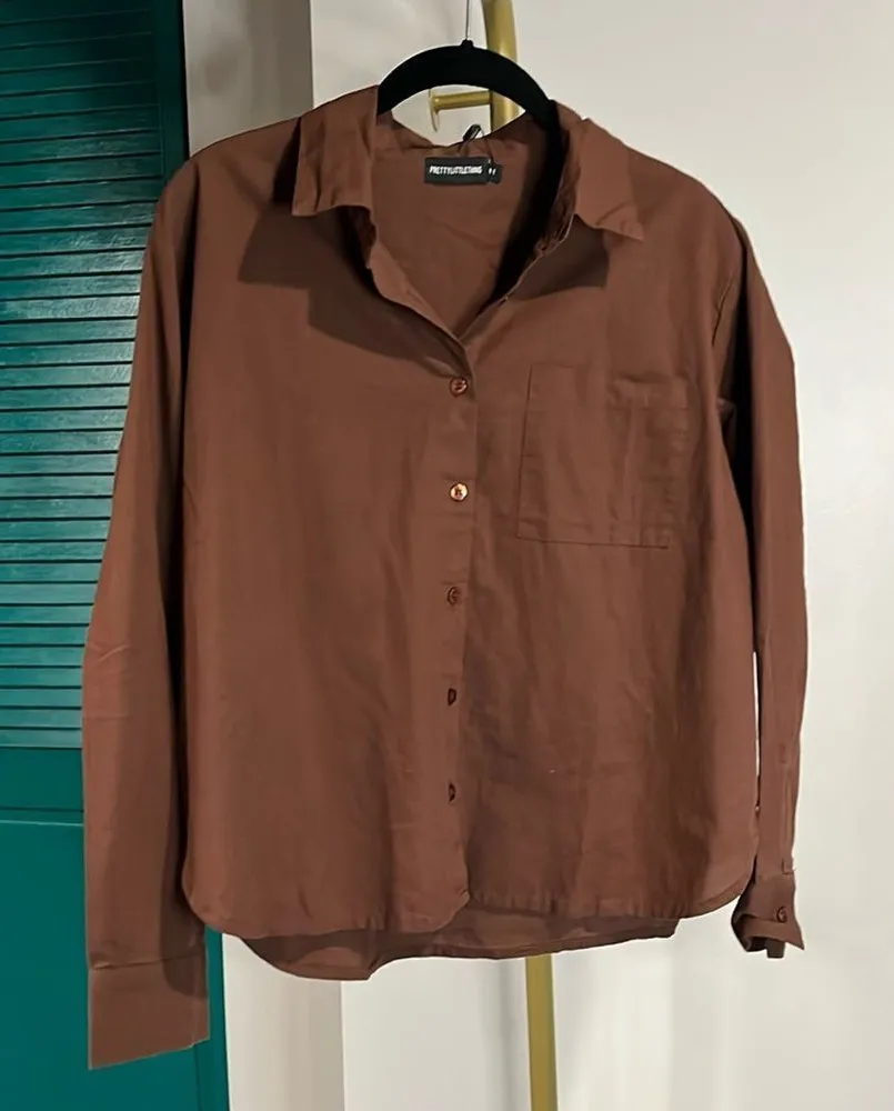 Pretty Little Thing NWT Elegant Brown Women's Button up Top - M Discover elegance with this chic b... Show more
