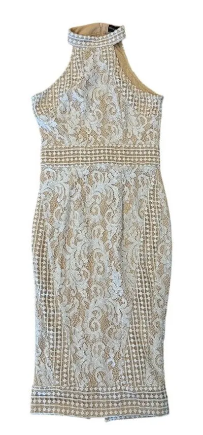 Pretty Little Thing White Lace Crochet High Neck Midi Dress size 4