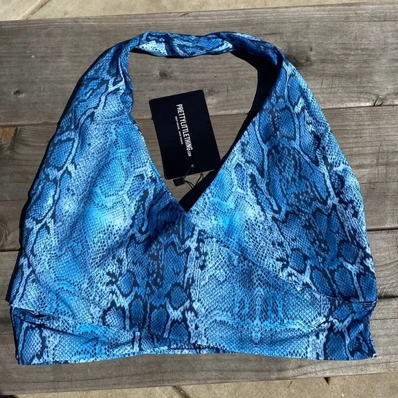 PrettyLittleThing Reptile Print Cross Over Halter Top USA Size 6 NWT