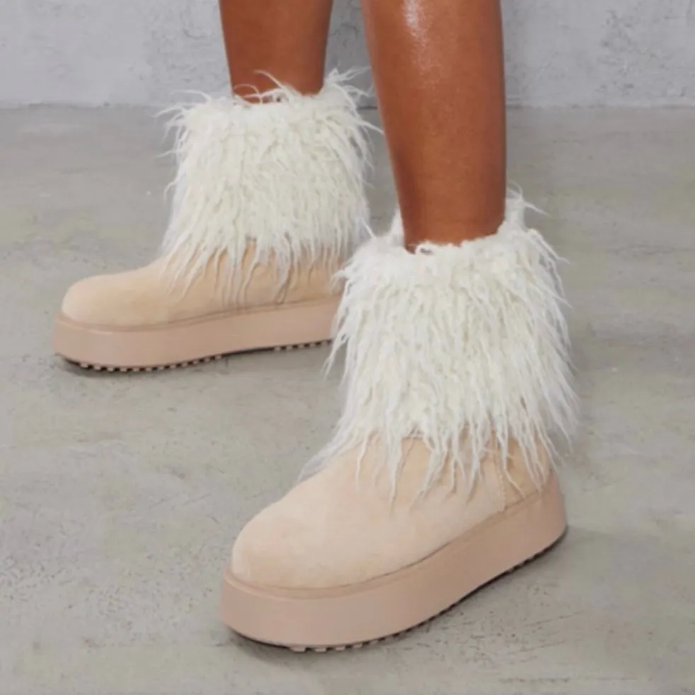This PrettyLittle Thing Cream Ankle Boot in size 9 features a faux suede upper with a faux fur trim,... Show more