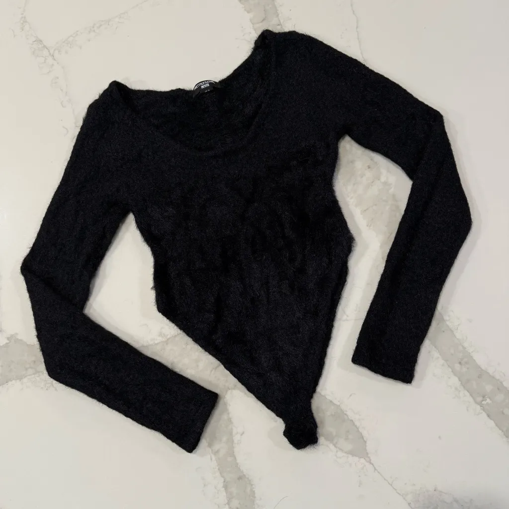 PrettyLittleThing Fluffy Round Neck Long Sleeve Bodysuit Women’s Size 6 Petite Black In good condit... Show more