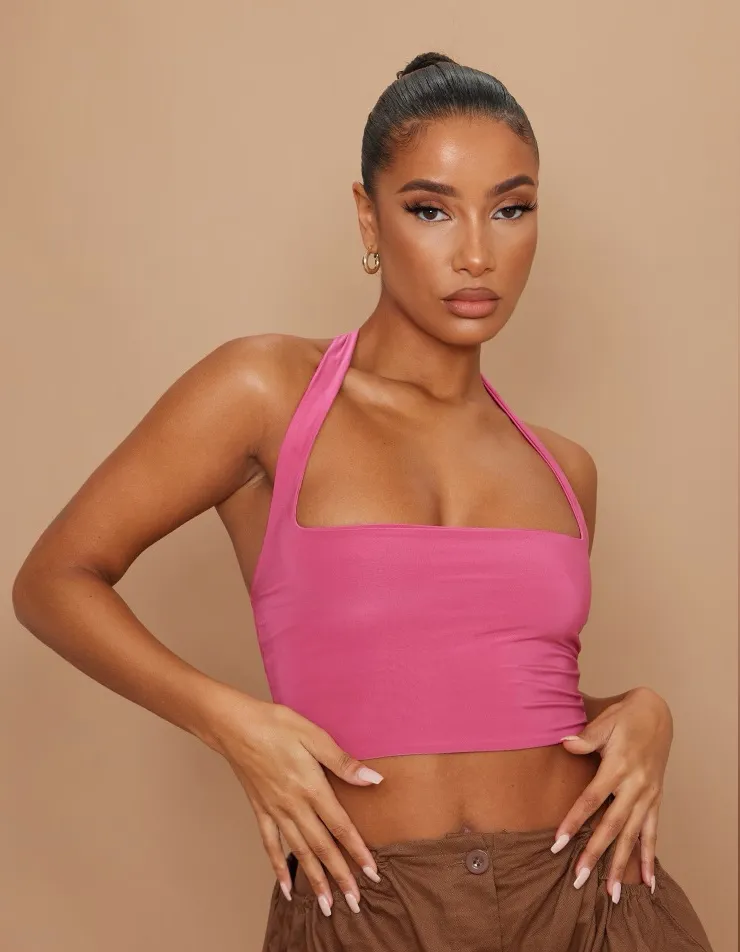 NWT. PrettyLittleThing Hot Pink Square Neck Halter Top. No Flaws.