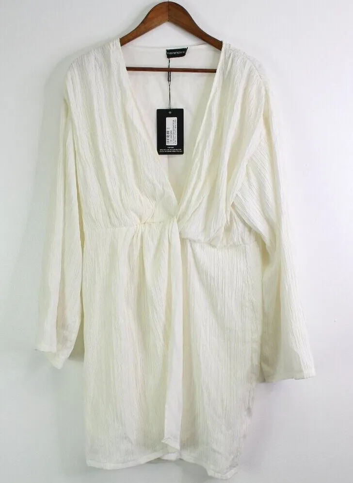 Pretty Little Thing Muslin Drape Detail Dress White Size L ***Womens New - no flaws to note Bust 2... Show more