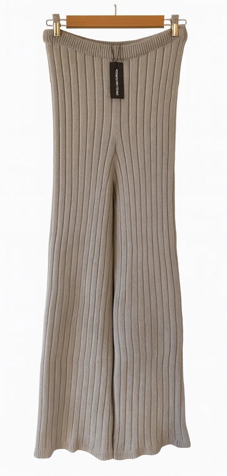 Brand new with tags, these PrettyLittleThing plus size grey brushed rib knit wide leg pants offer th... Show more