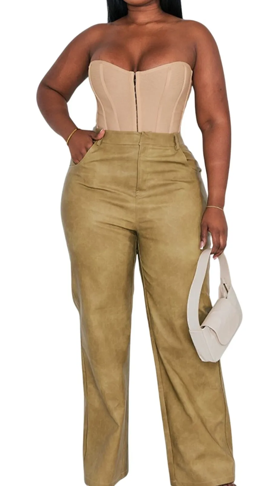 New with tag. PRODUCT DETAILS Level up your everyday wardrobe with these plus olive washed faux le... Show more