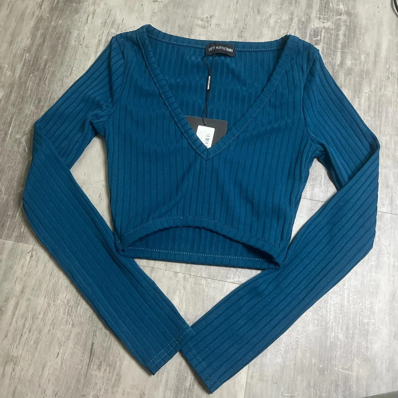 Size 2 Polyester/elastane Ribbed plunge vneck long sleeve crop New with tags, no flaws Approx measu... Show more