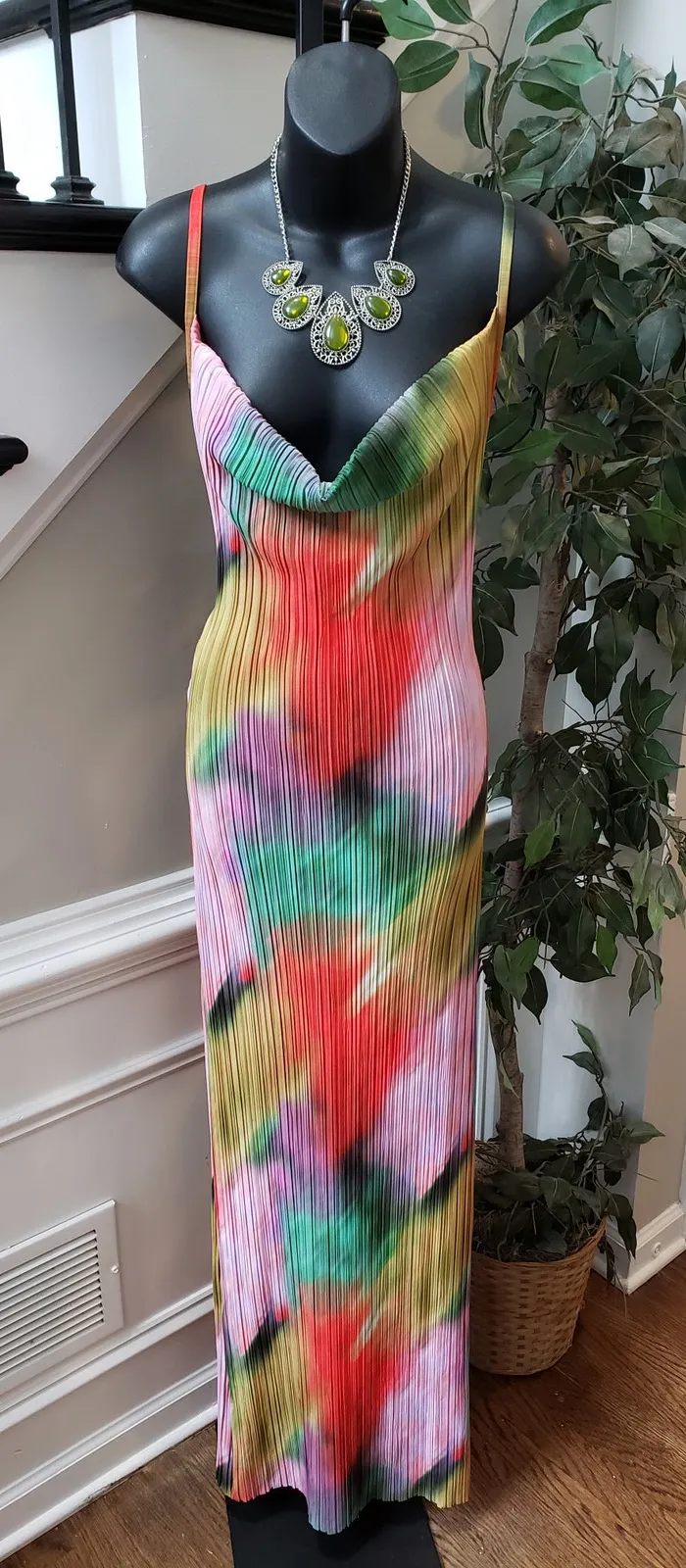PrettyLittleThing maxi dress in US size 12. Featuring a vibrant multicolor tie-dye print, pleated fa... Show more