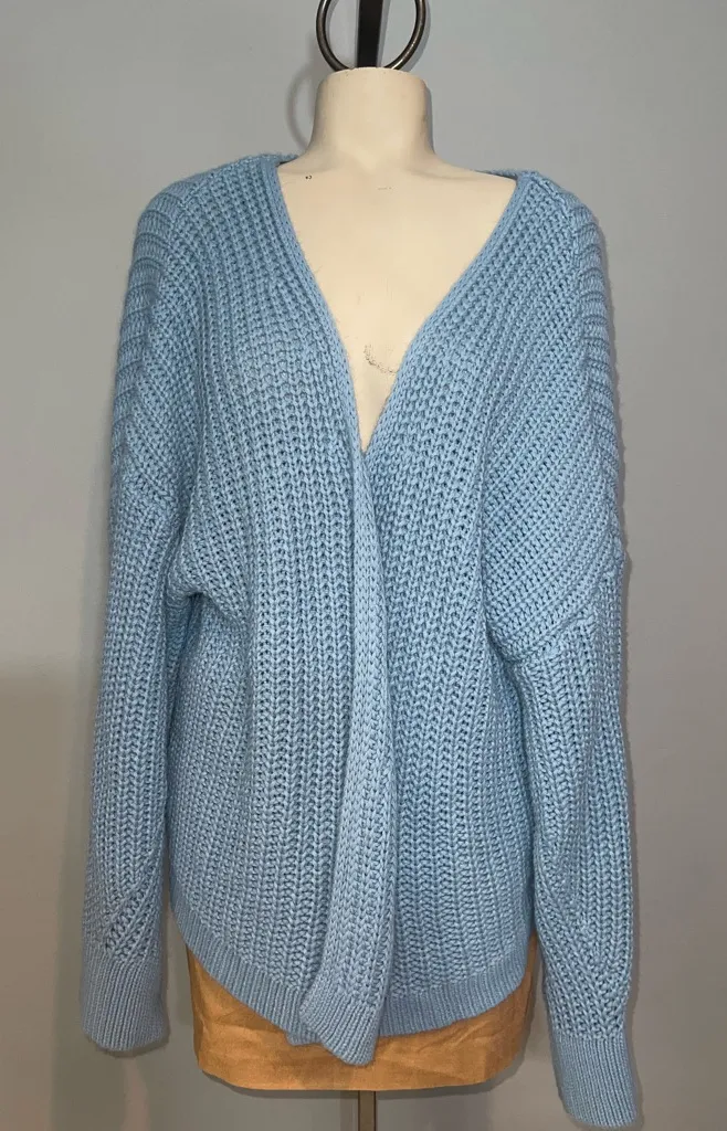 Cozy oversized open-front cardigan in a soft blue chunky knit. Long sleeves, relaxed fit, perfect fo... Show more