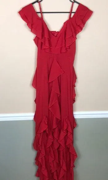 Excellent condition. 97% Polyester; 3% Elastane/Spandex. Ruffle details throughout. Adjustable sp... Show more
