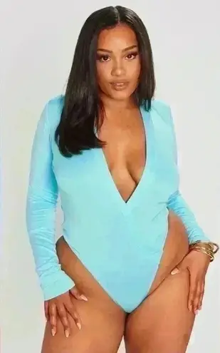 NWT PrettyLittleThings Women’s Blue Plunge Soft Feel Bodysuit Size L. Stay true to blue with this pl... Show more