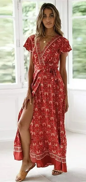 Pretty Garden L Wrap V Neck Maxi Dress Short Sleeve Floral Print Red Size L - $14 - From Vero