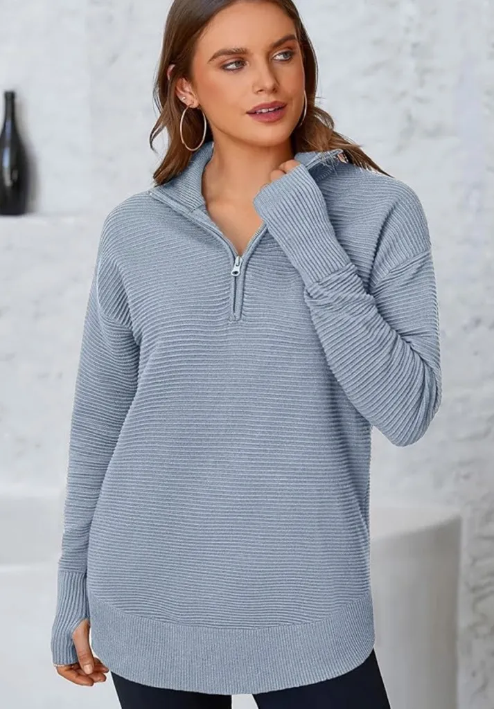 Prettygarden zip pullover ribbed sweater with thumb holes Blue Size XL - $28 New With Tags - From Stephanie