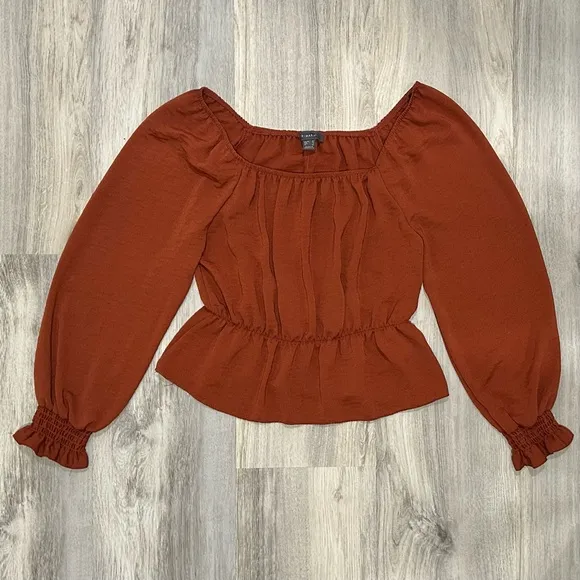 Primark Burnt Orange Long Balloon Sleeve Shirt Cropped Blouse Stretch Top Size 6 - $25 - From Alyssa