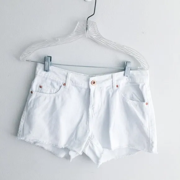Size 2, Primark cutoff white denim jean shorts. These are super cute basics! Just trying to downsize... Show more