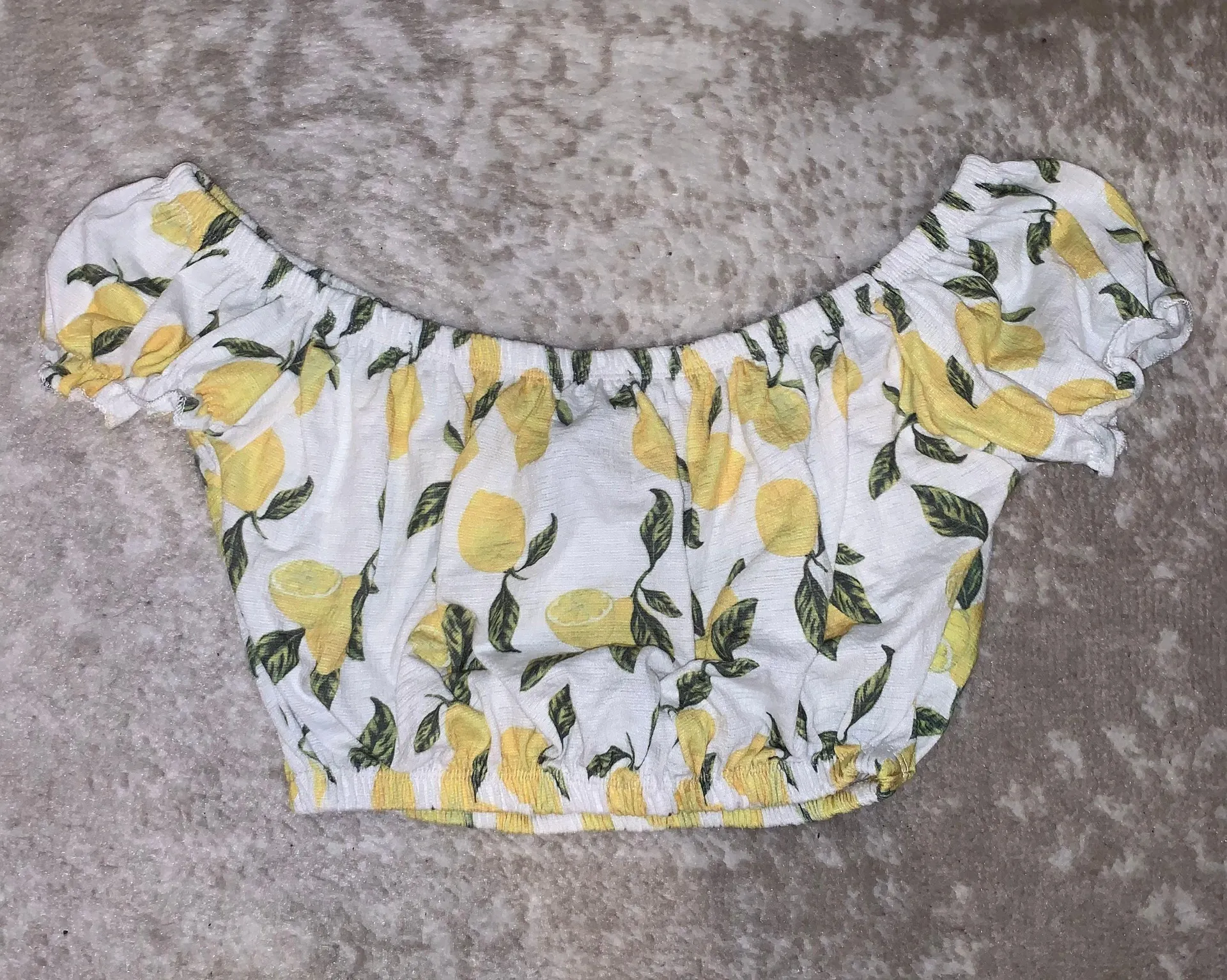 Cropped off the shoulder top with lemon. Super cute and fun for the spring/summer