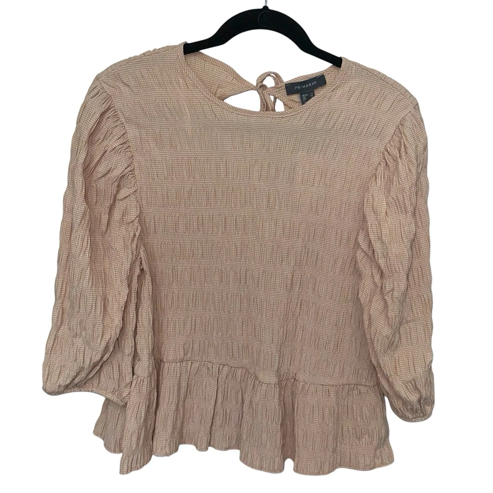 PRIMARK Orange Gingham Poplin Peplum Smocked Puff Sleeve Babydoll Top Sz 4 NWT Please see photos. M... Show more