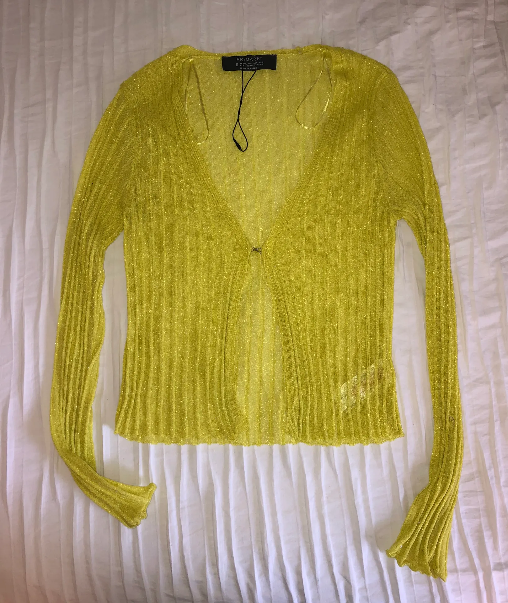 Perfect condition! Yellow/ lime green shimmery top for summer! Super cute with white bottoms! Very l... Show more