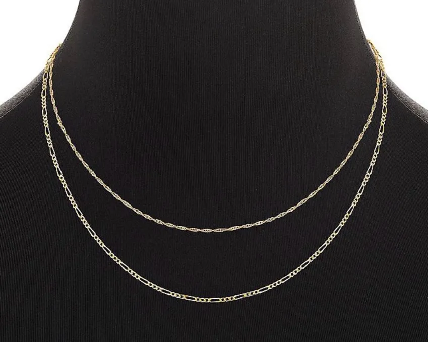 Accessorize in style with this PRIMROSE 14k Gold Flash Plated Singapore Chain & Figaro Chain Necklac... Show more