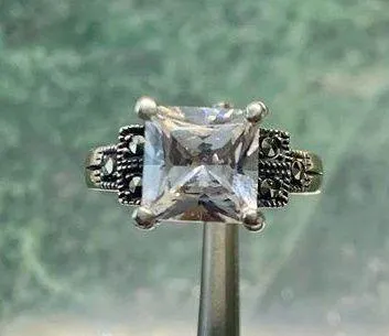 Princess Cut Cubic Zirconia And Marcasite VTG Engagement Ring Repro Size 8.5 Silver - $34 - From Ashley