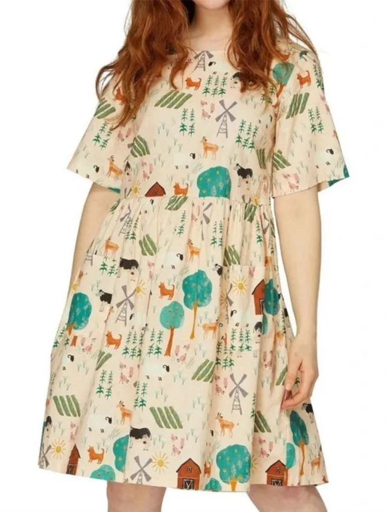 Princess Highway farm yard print dress farm animals and barn Green Size 10 - $50 - From Chadney