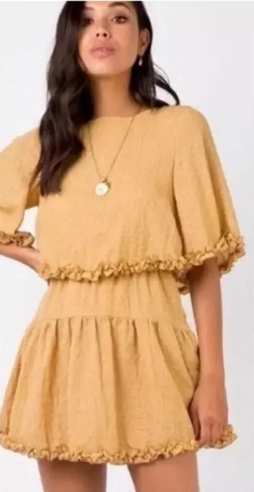 Description: Princess Polly Astro Mini Dress Mustard Gold Yellow Textured Tiered Ruffle Size 0 Adora... Show more