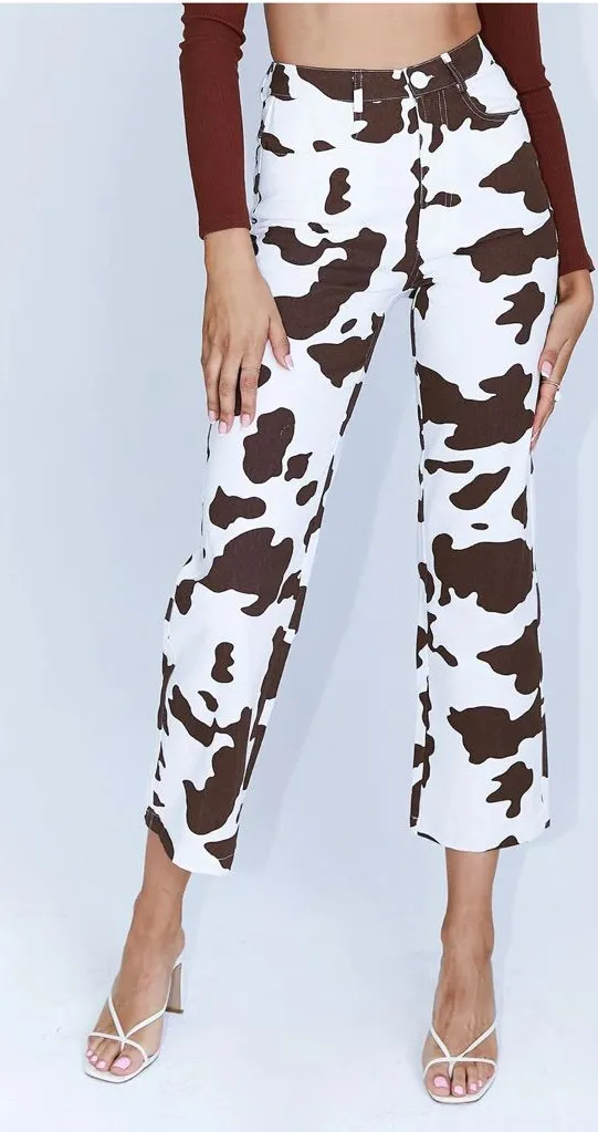 Princess Polly Be Wild Pants White and Brown Cow Print. Bowl and white cow printed pants. High waist... Show more