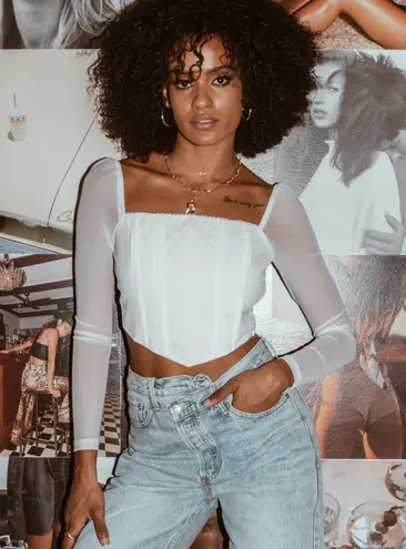 NWT, corset top w mesh material on back and boning through waist! Invisible zip at side and def bet... Show more
