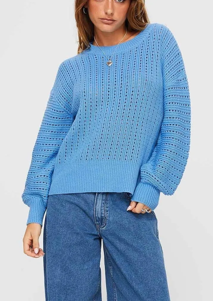Princess Polly Blue Peachyo Sweater Oversized Balloon Sleeves Sheer Knit Size Small/Medium New with... Show more